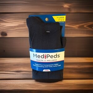 Medipeds Men Socks XL 12-15 Black Supportive Compression Relieve Swelling NWT