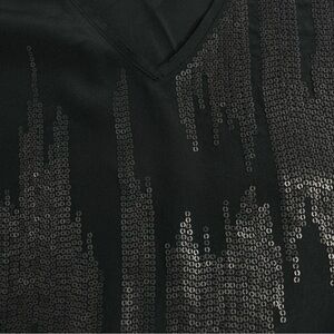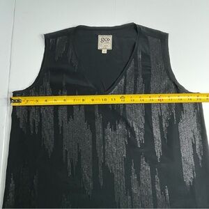 GO BY GO SILK Women's Black 100% Silk Tank Top Sequins V-Neck Size Medium