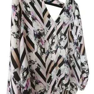 EUC Jennifer Lopez | Black and Pink Chevron Patterned Blouse