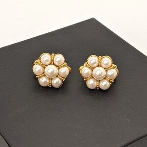 Erwin Pearl Vintage Gold-Tone Floral Cluster Faux Pearl Clip-On Earrings