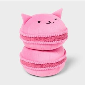 Infuse your little one's room with sweet flair with this Cat Macaron Holiday Mini Weighted Plush Throw Pillow from Pillowfort™. Designed in the shape of a cat macaron in pink, this mini novelty throw pillow comes complete with a cute face and ears on top. Boasting a recycled polyester-spandex microplush exterior with polyester fiber filling, this plush throw pillow is weighted to keep them feeling comfy and secure.