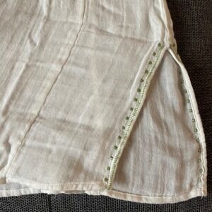 This is a New with Tags Eddie Bauer lightweight 100% cotton tunic top with exquisite floral embroidery. This charming top features a flattering scoop neckline with a partial button placket and 3/4 length sleeves. Delicate embroidery adorns the neckline and cuffs, adding a touch of artisanal beauty. It has slits on the sides for flow and ease of movement. The breathable gauze like fabric makes it perfect for warm weather outings or relaxed weekend wear. This would be perfect for a beach vacation or as a layered festival outfit. Measurements are included in photos.
