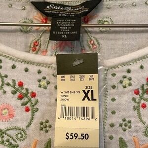 NEW Eddie Bauer Embroidered Gauze Tunic Top White Coastal Boho Cottage Lagen XL