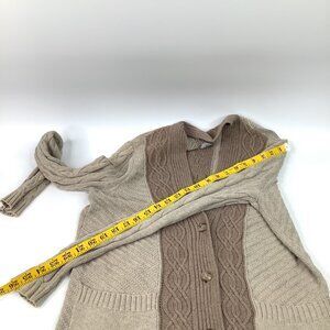 This cardigan tells a story of warmth and style, blending soft beige and taupe tones with intricate cable knit patterns. The long design and cozy pockets make it your perfect companion for layering on cooler days. Aventura’s sustainable craftsmanship ensures you stay chic while caring for the planet.