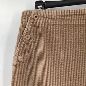 This tan corduroy skirt whispers timeless charm with its textured elegance and button accents. Versatile for casual outings or cozy evenings, it offers a refined touch for your wardrobe.