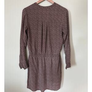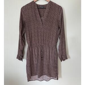Vince 100% Silk Printed Shirt Dress Long Sleeve Drawstring Waist