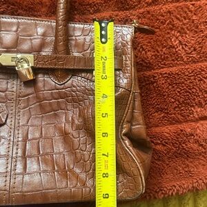 Elevate your style with this luxurious tan crocodile-embossed satchel. Perfect for any occasion, its elegant design adds a touch of sophistication to your ensemble.