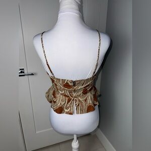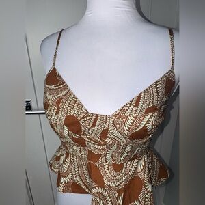 ALC, ALC top, ALC cami, paisley top, crop top, peplum top, spaghetti strap top, cami blouse, patterned top, summer top, casual top, designer top, contemporary fashion, women’s clothing, wardrobe staple