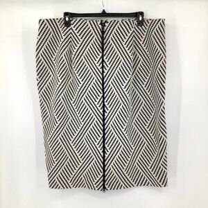 Black & White Textured Chevron Pencil Skirt Size 24 Full Rear Zip Office Casual