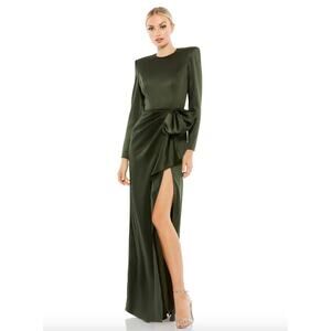 MAC DUGGAL Dress Size 12 Evening Gown Olive Green NEW Structured Bow Draped