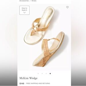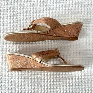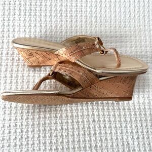 Lilly Pulitzer McKim Natural Cork Gold Wedge Sandals Womens 8.5 Beachy Resort