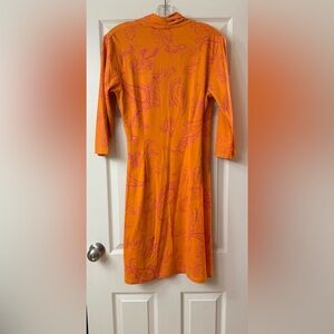 J. McLaughlin Orange and Pink Sheath Dress with Faux Wrap Neckline Medium M