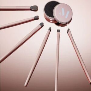 Morphe eye shaping essentials brush set in pink and black. Includes multiple brushes and a case.