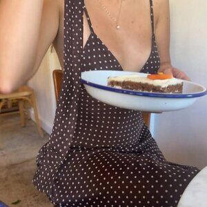 Brown Sexy Women's Polka Dot Print Backless Strap Dress