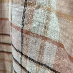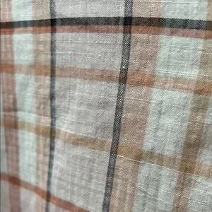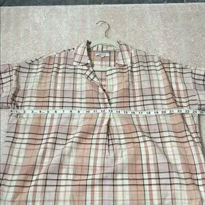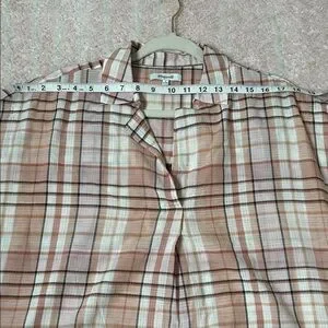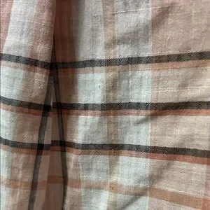 Chic plaid design with short banded sleeves. Soft pink and cream tones. Colors closest to last photo.