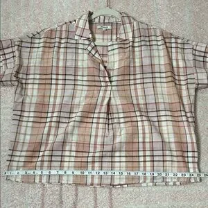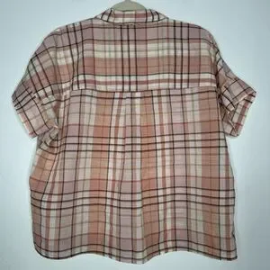 Madewell Park Popover Plaid Short Sleeve Shirt Size Medium Cotton Blend Office
