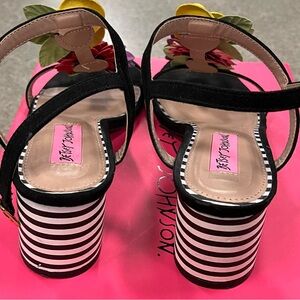 Betsey Johnson Black Sandals with Colorful Floral Accents