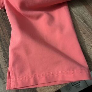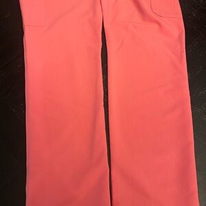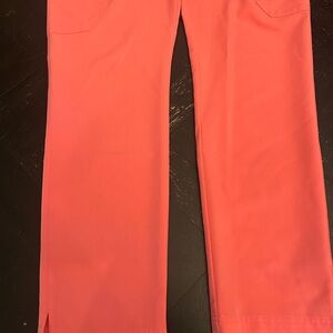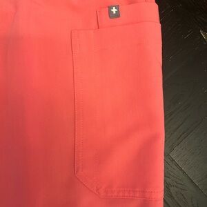 Vibrant coral scrub top and bottom by Figs. Comfortable and stylish.