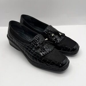 Ara Rachel Women's Loafers: Black Faux Croc Patterned - Size 8.5 US