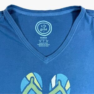 LIFE IS GOOD Womens V Neck Graphic Tee Large Classic Fit Coastal Casual