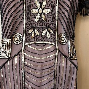 Vijiv Black and Gold Sequin 1920’s Flapper Mini Dress size M