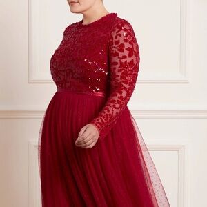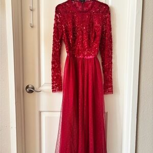 Elegant sequined midaxi/ballerina dress with tulle skirt in a cool red color. Originally purchased in 2023, colorway no longer available on website.