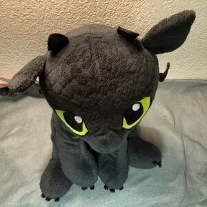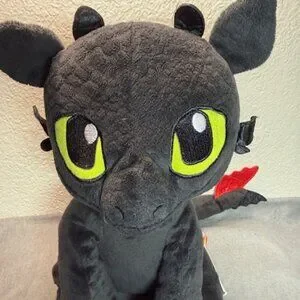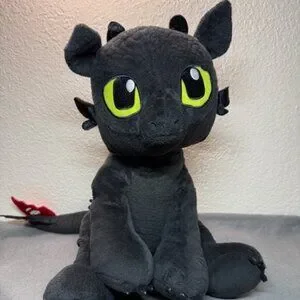 Authentic Build-A-Bear Workshop Toothless plush from DreamWorks’ hit movie series "How to Train Your Dragon". This adorable stuffed animal features Toothless’ signature black scales, bright green eyes, and detailed tail fin design. Perfect for collectors, fans of HTTYD, or anyone who loves dragons!