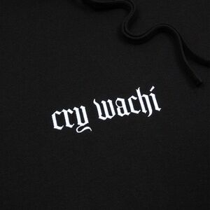 Featuring a large, highly detailed & intricate flower skull embroidery on the back, and a small 'cry wachi' text embroidery on the front.