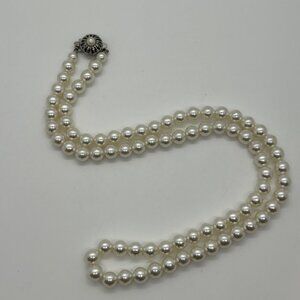 Vintage Sarah Coventry Faux Pearl Necklace, Floral Box ClaspTimeless 1960s