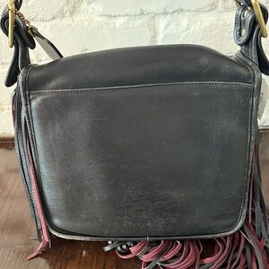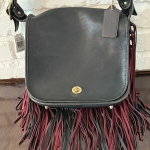 This is a vintage Coach stewardess bag that was upcycled in a collab with Barney’s with fringe. This bag is vintage so some wear on bag itself, however it is “new” as an upcycled bag with Barney’s. This was done in 2016. I think I purchased this in 2018 and sadly never used it. Super cute. I hesitate selling. Each bag was upcycled uniquely and is one of a kind. Thanks!
