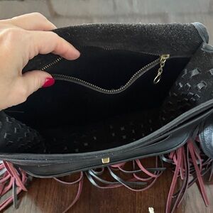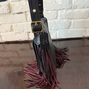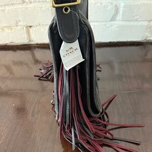 Coach Barneys Stewardess Bag Fringe Black with Black Burgundy Fringe