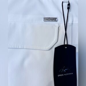 New Greg Norman Men's Moisture Wicking Professional Golf Pants in white are designed for the avid golfer seeking comfort and performance on the course.