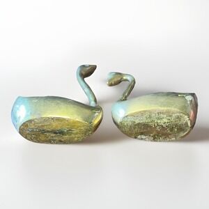 Pair Of Vintage Solid Brass Swans Ducks
