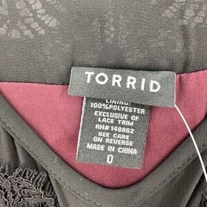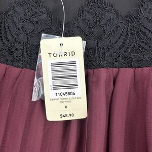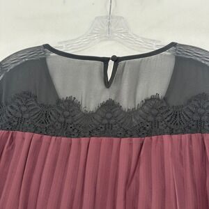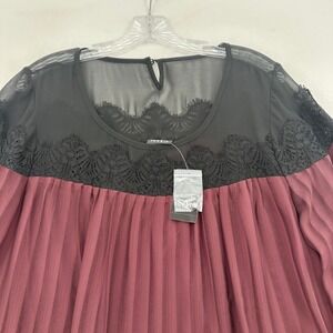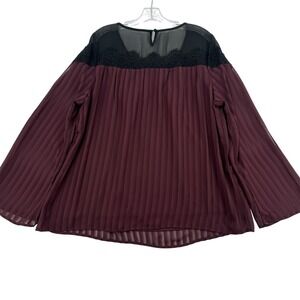 Torrid Womens Plus Sz 0 Burgundy Lace Trim Pleated Bell Sleeve Sheer Blouse Top