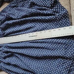 Free People navy blue floral long sleeve dress with a ruffled neckline and flowy fit-and-flare silhouette. Feminine, romantic, and easy to wear with soft drape and lightweight feel — perfect for cottagecore, boho, brunch, or everyday styling.