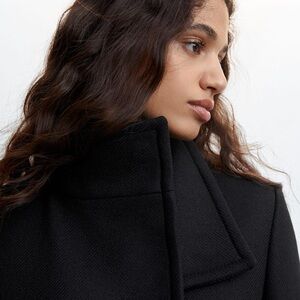 Mango size Medium Woolen Italian Wool Double-Breasted Belted Trench Coat Black