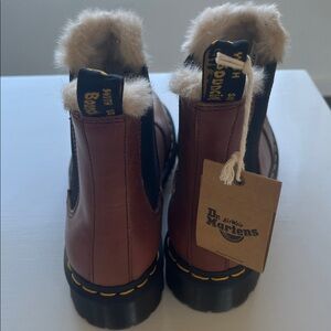 NWT Dr Martens 2976 Leonore Chelsea Boots Faux Fur Lined in Saddle Tan
