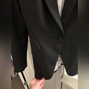 NWOT WHBM single button tuxedo blazer. Tags removed but brand new condition, back panels are still sown shut as are the pocket flaps. Has an adorable Parisian print on the lining which shows if you roll up the cuffs. Great staple!