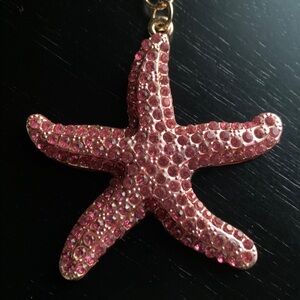 Sparkling rhinestone sea star bag charm / keychain with gold accent lobster clasp.