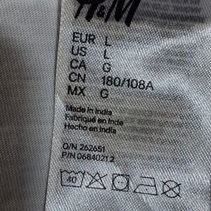 The H&M Divided Essentials Shirt for women in size L is a white short sleeve t-shirt with a solid pattern, crew neckline, and casual sleeve type. Made from 100% cotton, this pullover shirt features a regular fit and is lightweight, making it suitable for all seasons. With a vintage-inspired theme that includes flower, college, rose, skull, and gothic designs, this basic t-shirt is perfect for casual occasions and travel, offering comfort and style for the modern woman.
