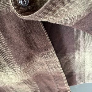 Levi's shirt with a dark brown plaid pattern. Features button-up front and chest pockets.