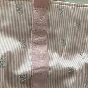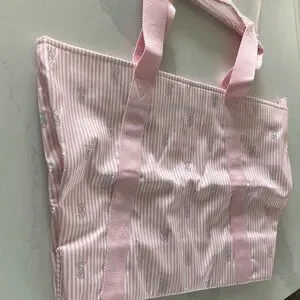 Stylish pink striped tote bag perfect for everyday use. Features a spacious interior and durable handles for easy carrying.