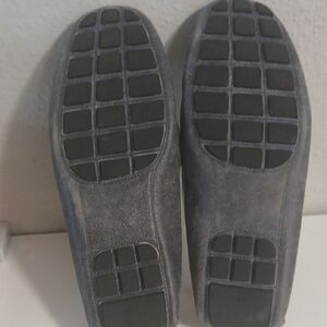 Sophisticated gray suede loafers by Pollini. Features a braided detail for added style. Ideal for casual and formal wear.