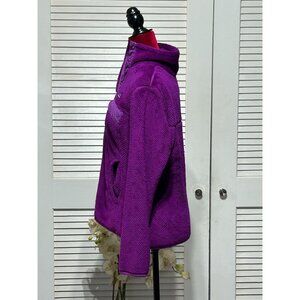 This Patagonia Polartec Thermal Pro fleece pullover offers exceptional warmth and comfort. Designed for women, the vibrant purple hue pairs utility with style, featuring a cozy high-neck collar and a practical chest pocket. Crafted with quality, it is ideal for layering in colder conditions, adding a touch of outdoor sophistication.