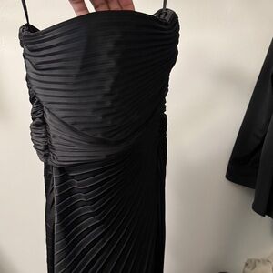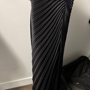 Chic black maxi dress with elegant pleats. Ideal for formal occasions.