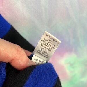 There is a minor flaw with the sweater like a tiny hole near the bottom black stripe, which isn’t very noticeable (see photo)
