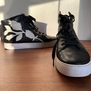 Frye Lena Floral High Too black leather sneakers, size 11