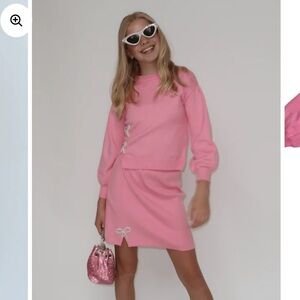 This two-piece set features a stylish long-sleeve top and matching skirt, designed for a seamless blend of sophistication and charm.