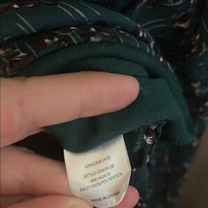 Elegant teal blouse with floral design. Features ruffled sleeves and keyhole neckline. Perfect for any occasion.