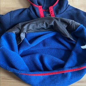 L.L. Bean Navy and Bright Red Fleece Hooded Pullover